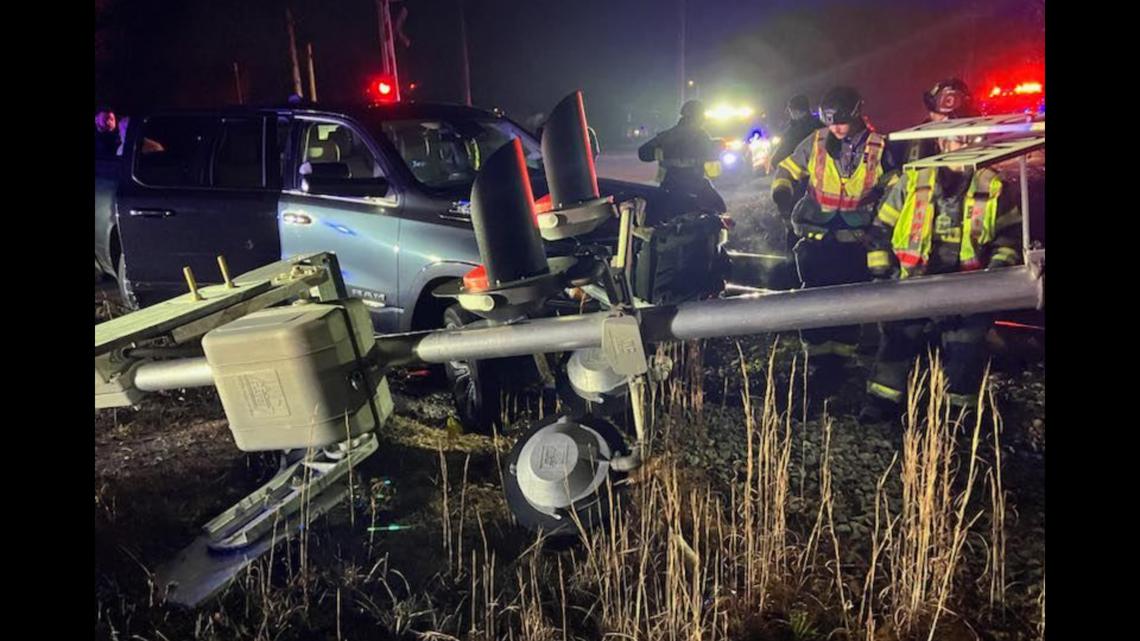 Pickup truck, train collide on Suburban Drive in Suffolk